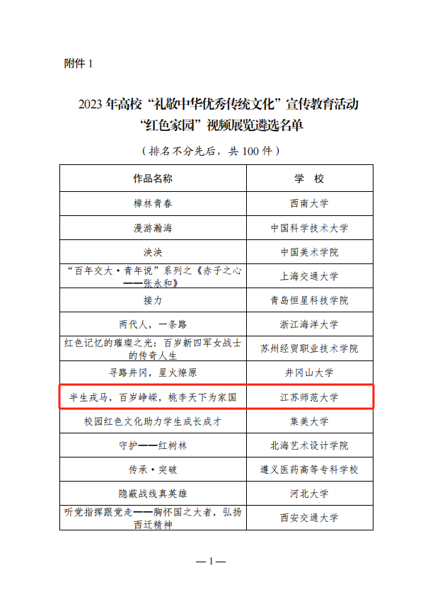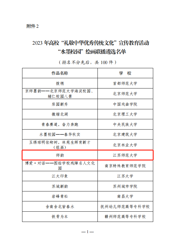 近日,教育部公布了2023年高?!岸Y敬中華優秀傳統文化”宣傳教育活動評選結果,我校選送的關工委作品《半生戎馬百歲崢嶸 桃李天下為家國》獲選“紅色家園”視頻展覽遴選名單,美術學院作品《師韻》獲選“水墨校園”繪畫聯播遴選名單。