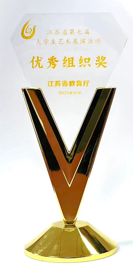 近日,由江蘇省教育廳主辦的江蘇省第七屆大學生藝術展演活動優秀節目匯報演出在南京財經大學舉行,我校團委(藝術教育中心)負責同志應邀在現場觀看演出并參加頒獎儀式。在本屆省大學生藝術展演活動中,我校共報送38件作品參賽,其中,藝術表演類作品11件、藝術實踐工作坊3件、藝術作品20件、微電影3件、高校美育改革創新優秀案例1件。在我校師生的共同努力下,最終共榮獲省賽獎項42項,其中特等獎4項、一等獎4項、二等獎6項、三等獎21項,3項原創作品榮獲優秀創作獎,3名學生榮獲優秀大學生藝術團團員稱號,學校榮獲“優秀組織獎”,入圍國賽作品1項。