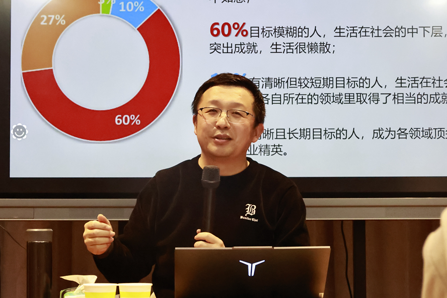 孫配貞通過趣味游戲引入時間這一話題,以自身學習經歷和詳實的調查數(shù)據(jù)引導同學們明晰自身需求,樹立遠大目標。通過視頻展示向同學們介紹smart原則目標設置法,告訴同學們如何設置目標,如何正確進行時間管理,表達了時間分配的重要性,向同學們提出了“四象限法則”與“番茄工作法”,讓同學們克服拖延的習慣。孫配貞鼓勵同學們把握當下,將時間充分利用起來,合理安排當下的每分每秒,積極作為。