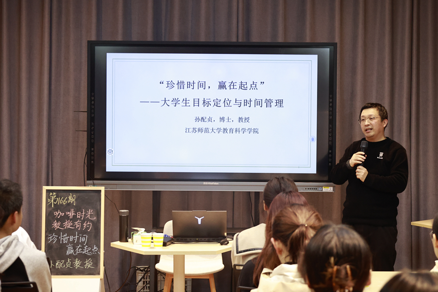 3月28日,第166期“咖啡時光·教授有約”活動在泉山校區(qū)園丁餐廳外六點匯實踐基地舉行。孫配貞教授就“珍惜時間,贏在起點——大學生目標定位與時間管理”這一主題與同學們進行了交流。