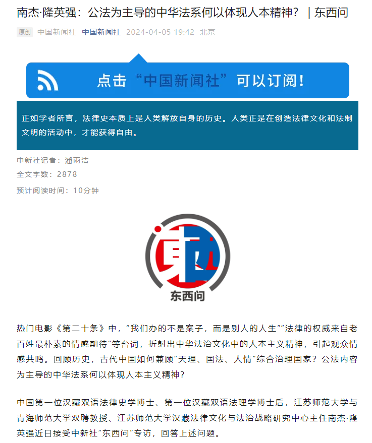 南杰·隆英強(qiáng):公法為主導(dǎo)的中華法系何以體現(xiàn)人本精神?