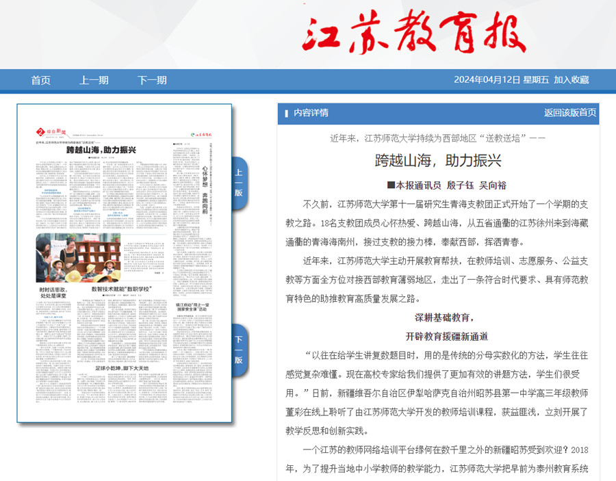 江蘇教育報4月12日報道我校西部支教,報道內容如下: