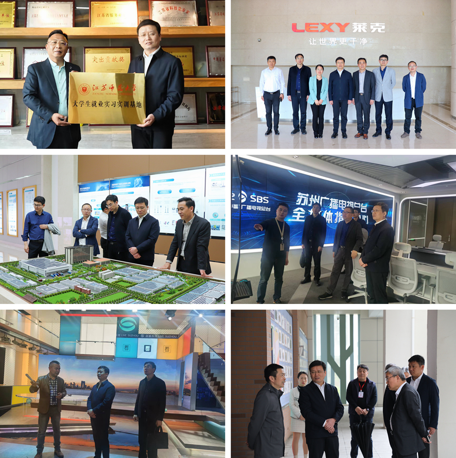 商亮一行先后走訪了興才永聯(lián)控股有限公司、萊克電氣股份有限公司、蘇州廣播電視總臺(tái)、昆山融媒體中心、昆山市教育局、師大附屬昆山實(shí)驗(yàn)中學(xué),與相關(guān)單位負(fù)責(zé)同志開(kāi)展座談交流,并進(jìn)行實(shí)地考察。座談會(huì)上,商亮介紹了我校辦學(xué)歷史和特色、人才培養(yǎng)模式和成效、專業(yè)優(yōu)勢(shì)和學(xué)科發(fā)展等,聽(tīng)取企業(yè)人才招聘需求及趨勢(shì)變化,洽談校企合作領(lǐng)域和方式。實(shí)地考察中,參觀走訪了全媒體指揮中心、演藝中心、企業(yè)產(chǎn)品展廳和生產(chǎn)車(chē)間等,對(duì)于國(guó)家級(jí)廣播電視媒體融合發(fā)展創(chuàng)新中心的大數(shù)據(jù)、人工智能、區(qū)塊鏈、4K+5G等高新技術(shù)、上市企業(yè)創(chuàng)新發(fā)展理念等有了更加深入的了解,也為學(xué)校人才培養(yǎng)提供了優(yōu)化思路,力爭(zhēng)全面實(shí)現(xiàn)人才培養(yǎng)與生產(chǎn)實(shí)踐的閉環(huán)銜接。商亮為興才永聯(lián)控股有限公司成為江蘇師范大學(xué)“大學(xué)生就業(yè)實(shí)習(xí)實(shí)訓(xùn)基地”授牌。
