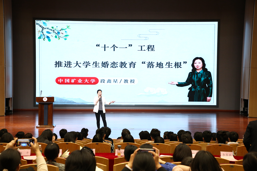 在大學(xué)生新型婚育文化培育行動專場活動中,中國礦業(yè)大學(xué)公共管理學(xué)院段鑫星教授作《“十個一工程”推進大學(xué)生婚戀教育“落地生根”》專題講座,對如何培育新型婚育文化進行了探討與解讀。