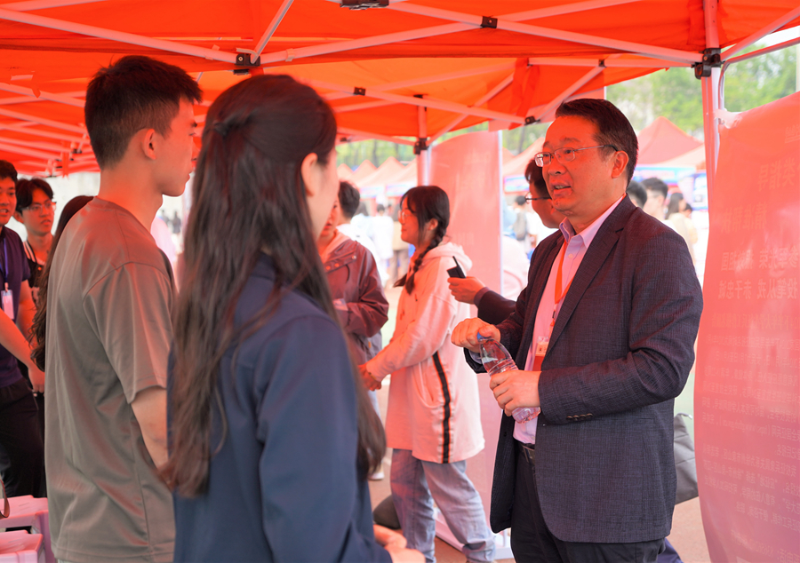 四月的校園百花爛漫、生機勃勃。招聘會現場人頭攢動、氣氛熱烈,各用人單位耐心向求職學生介紹各自的企業文化、福利待遇、招聘計劃等,畢業生們積極投遞簡歷,仔細詢問心儀崗位的招聘條件、發展前景。張玉勤與研究生工作部、學生處相關領導在招聘會現場與用人單位和應聘的畢業生們親切交流,詳細了解招聘崗位需求、專業要求、薪資待遇以及簡歷投遞情況,引導同學們積極主動求職,抓住就業機會。