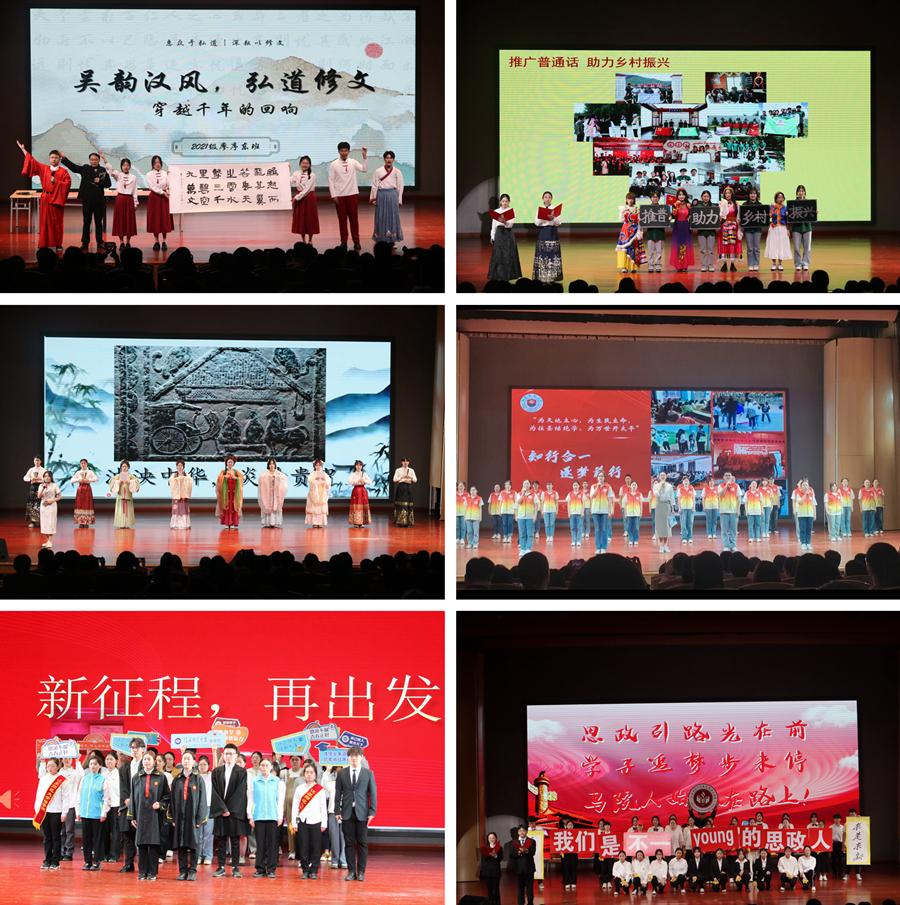 展評現場,由各個學院推薦的23個班級圍繞“班風正、學風好、學子優、班委強、榮譽多”等五個方面,以主題匯報、情景劇、朗誦和歌舞表演等多種表現形式展示了班級建設的突出成績和特色亮點,充分展示出班集體昂揚向上的精神風貌、奮發有為的青春力量和矢志不渝的責任擔當,彰顯了各學院在班級建設方面的創新舉措和在人才培養方面的顯著成效。各班級的精彩展示贏得現場陣陣掌聲。