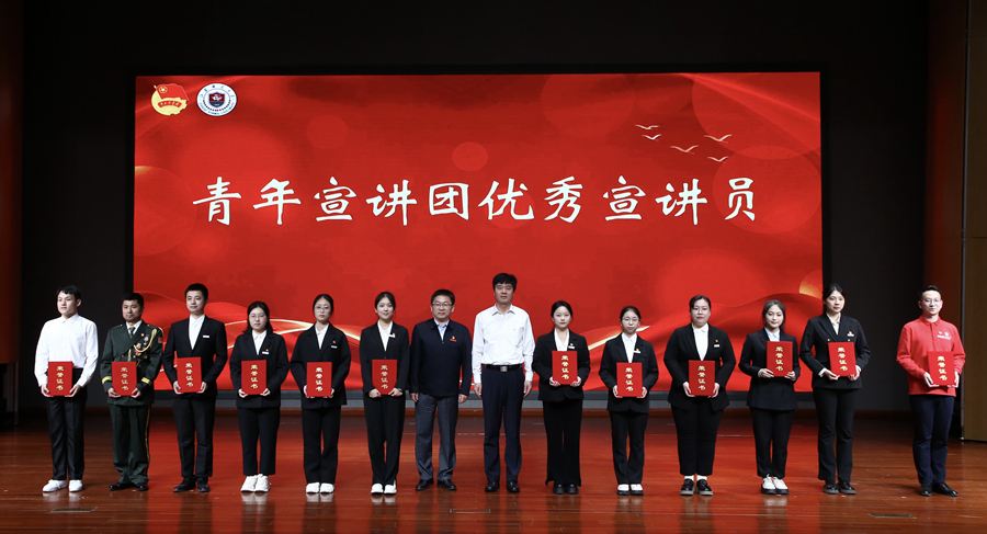 表彰大會上,我校團委成立的“星漢”青年宣講團通過激情昂揚、內涵深刻的宣講,展現了新時代我校青年砥礪奮進、擔當奉獻的青春風采。生命科學學院樊昌宇同學以《我“熱辣滾燙”的大學生活》為題,分享了他從堅持鍛煉有效減重,到投身科創實踐榮獲國獎,到專注學習科研最終保研至北京大學的追夢故事;法學院詹其飛同學的宣講《在新戰場續寫新榮光》講述了他參軍入伍、搶險救災,重返校園、奉獻基層的奮斗故事,展現了永葆軍人底色、勇擔時代重任的優良作風;馬克思主義學院尹子宸同學的宣講《踐行“兩山”理論,建設美麗中國》聚焦家鄉生態發展,闡述了我國生態文明建設從理論到實踐的一系列深刻變化;文學院余永芳老師在《從中國教育的“朋友圈”看“一帶一路”》的宣講中,從教育視角分享了中國積極推動“一帶一路”教育合作,在人才培養、人文交流等方面展現的大國擔當;教育科學學院于戰宇老師以《我的成長故事,它有色彩》為題,以自身求學經歷為主線,講述了他秉持謙和、不斷嘗試、潛心鉆研,堅持不懈、永不放棄的多彩成長故事;語言科學與藝術學院胡曉波同學和他的手語翻譯同學以《無聲世界,有聲夢想》為題,分享了他勵志求學、自立自強,以公益之力扶聾助殘、以樂觀精神詮釋無限可能的奮斗歷程;生命科學學院劉偉杰老師的宣講《從實驗室到空間站的逐夢堅守》分享了其帶領團隊開展空間站生物被膜防控研究,為中國空間站的長期安全穩定運行貢獻師大力量的科研報國故事。大會在小合唱江蘇師范大學青年版《上春山》中圓滿結束,積極展現了我校青年意氣風發的奮進姿態。