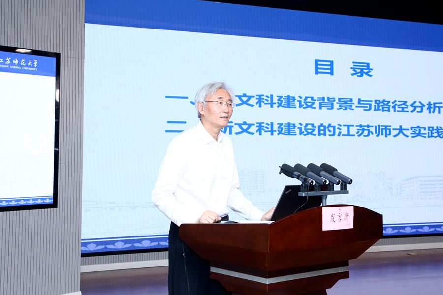 本次大講堂主題為“催生新形態、發展新賽道、形成新動能——新文科人才培養改革與實踐”,由教育部首批新文科研究與改革實踐項目“基于協同機制的雙學位新文科復合型人才培養方案構建與改革實踐”負責人、語言能力省部共建國家級協同創新中心主任楊亦鳴教授主講。講座聚焦新文科建設背景與路徑分析、新文科建設的江蘇師大實踐等方面,全面展示了江蘇師范大學在神經語言科學領域研究的創新性探索,給全省文科教育與研究提供了有效遵循。