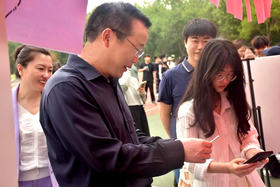 開幕式上,張玉勤打響發(fā)令槍,宣布江蘇師范大學心理健康教育活動正式開始。本次活動包含各學院和心理健康教育中心舉辦的非遺漆扇DIY、趣味投壺、心境漫游、趣味運動會等內(nèi)容,旨在通過互動式、體驗式、浸潤式的教育活動,促進同學們身心健康全面發(fā)展。啟動儀式后,各學院師生代表攜手同行,共同參與活動。活動現(xiàn)場,同學們積極參與、氣氛熱烈,在歡聲笑語中舒緩情緒、釋放壓力。