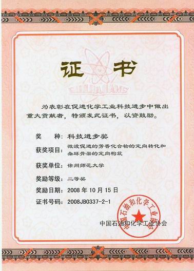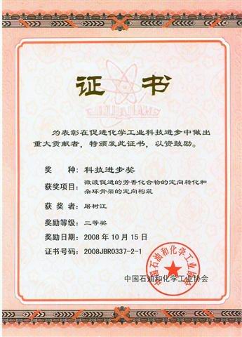 2008年10月26日,在北京人民大會堂召開的中國石油化學工業科學技術大會上,對全國在石油化學工業方面做出突出貢獻的單位和個人進行了表彰。我校化學化工學院屠樹江教授帶領的課題組研究的課題“微波促進的芳香化合物的定向轉化和雜環骨架的定向構筑”榮獲科技進步二等獎。特向屠樹江教授和課題組表示祝賀。