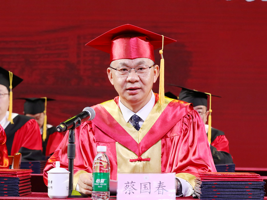 伴隨著莊嚴的國歌聲,畢業典禮正式開幕。校長、校學位評定委員會主席周汝光在典禮上致辭,代表學校向即將開啟人生新篇章的畢業研究生們表示熱烈的祝賀,向悉心培育、默默支持畢業研究生們的導師、家人和所有付出辛勞的師生員工表示衷心感謝。周汝光以“以青春之名,赴時代之約”為題,飽含深情地回顧了全體畢業研究生攜手度過的師大歲月和在讀期間取得的成績。他寄語全體畢業研究生,要把個人的理想藍圖與中國式現代化的宏大偉業聯系起來,積極投身祖國波瀾壯闊的建設實踐之中,與社會發展同頻共振,不斷增強做中國人的志氣、骨氣、底氣。要堅定信念,做矢志不渝的愛國者;要接續奮斗,做不負時代的實干家;要心胸豁達,做從容不迫的樂天派。周汝光希望全體畢業研究生秉持“崇德厚學 勵志敏行”的校訓,惟實勵新、精進臻善,帶著母校的祝福奔赴下一場人生旅途,盡情憧憬、勇敢熱愛、不懈奮斗。