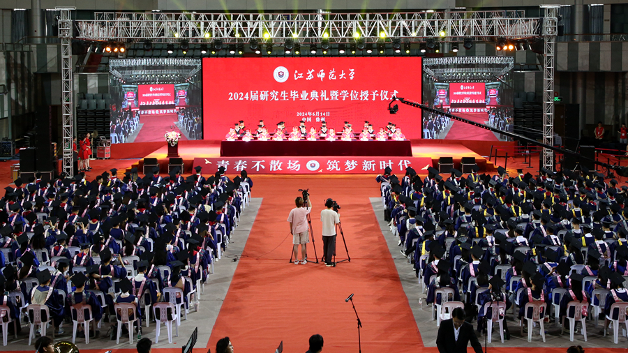 全體2024屆畢業研究生將肩負“江蘇師大人”這個值得珍藏一生的印記,在廣闊的舞臺施展才干,為偉大的祖國建功立業,無懼風雨,奔赴夢想,奮力書寫為中國式現代化挺膺擔當的青春篇章。