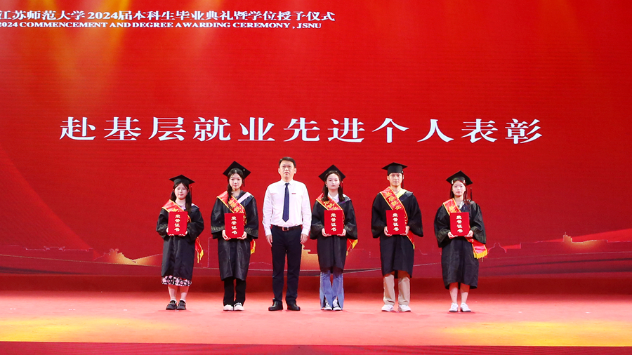 他們毅然投身基層,深耕厚植,以青春為筆,書寫奉獻華章,在祖國廣闊天地間繪就青春夢想;他們將小我融入家國大我,讓青春在祖國最需要的地方絢麗綻放。他們是赴基層就業的師大學子。畢業典禮上,對2024屆畢業生赴基層就業先進個人進行了表彰。校紀委書記閭浩為“畢業生赴基層就業先進個人”代表頒發了榮譽證書。