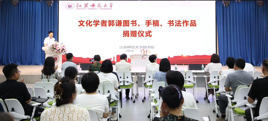 郭謙先生發表捐贈感言,對圖書館精心安排的捐贈活動表示了由衷的感謝。他表示,江蘇師范大學對捐贈工作的細致入微和豐富多樣讓他深感溫暖和敬意。郭謙先生還分享了自己的文學和藝術創作歷程,并透露了未來捐贈的計劃,表達了對江蘇師范大學圖書館工作的支持和對文化傳承的期望。