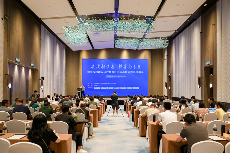 6月27至28日,“共建新生態,攜手向未來”江蘇省高校數字校園建設研討會在我校召開。會議由江蘇省高校教育信息化研究會網絡信息專委會主辦、江蘇師范大學承辦。來自省內外80多所高校信息化部門同仁及科技企業代表150余人參加會議。我校黨委常委、副校長婁崢嶸出席會議并致辭。會議的三個階段分別由中國礦業大學信息化處處長孫彥景、南京醫科大學信息化處處長黃石平和南京航空航天大學信息化處處長張焱主持。