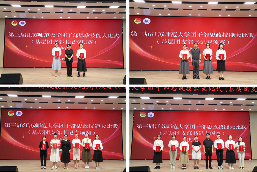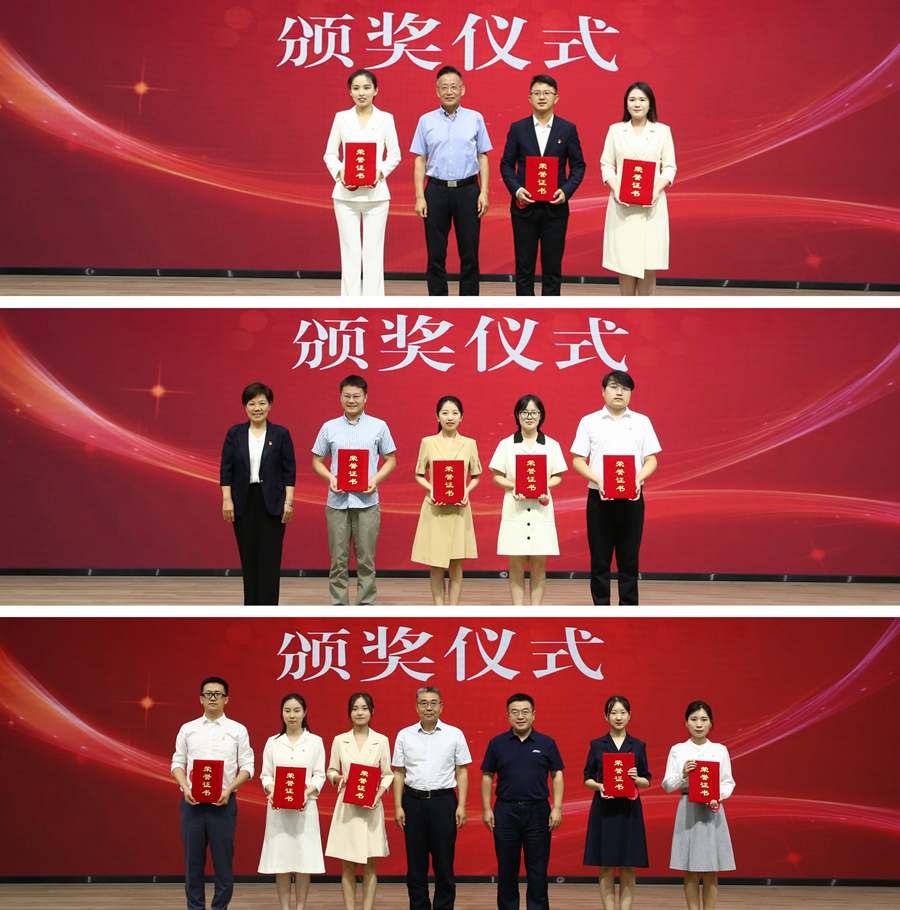 在專職團(tuán)干部專項(xiàng)賽中,張玉勤為?!靶菨h”青年宣講團(tuán)暑期宣講活動(dòng)授旗。參賽選手緊緊圍繞習(xí)近平新時(shí)代中國特色社會(huì)主義思想和黨的二十大精神,聚焦時(shí)代主題、立足青年視角,精彩展示了以習(xí)近平生態(tài)文明思想、科技創(chuàng)新、國家安全、文化自信、建黨精神等為主題的思政課。最終,符靖璇、樊宏、范珊珊三位老師獲得一等獎(jiǎng),丁永劍、張競文、閆敬怡、張巖行四位老師獲得二等獎(jiǎng),汪滿莎、李子緋、崔沁宇、程琳、張杰五位老師獲得三等獎(jiǎng)。在基層團(tuán)支部書記專項(xiàng)賽中,選手們用“青言青語”生動(dòng)闡述黨的創(chuàng)新理論,圍繞習(xí)近平文化思想、北斗精神、焦裕祿精神、新質(zhì)生產(chǎn)力等主題進(jìn)行團(tuán)課展示。最終,袁藝、朱聞秋兩位同學(xué)獲得特等獎(jiǎng),方雨彥、鞏子越、李越三位同學(xué)獲得一等獎(jiǎng),陳子越、許嘉雯、湯淇馨、倪睿、羅惠吉五位同學(xué)獲得二等獎(jiǎng),王子楊、劉思含、張力心、魏思琪、莊言、王子珊六位同學(xué)獲得三等獎(jiǎng)。