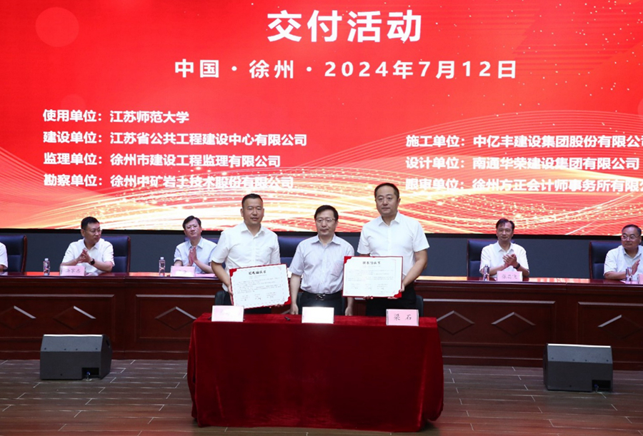 高飛在致辭中簡要介紹項目建設的特點與難點,對省住建廳集中建設管理處對工程建設的大力支持、學校的密切配合與各參建單位的辛勤付出表示感謝,表示省公建中心將繼續提升項目管理專業化水平,打造精品工程,為“筑”力“十四五”教育強國建設貢獻公建力量。曹良春對數學研究院大樓的落成交付表示衷心祝賀,也對我校首個政府集中建設項目的具體實施表示肯定。希望我校與省公建中心通力合作,充分發揮集中建設優勢,在學生宿舍樓、新師范綜合實訓樓等項目實施過程中再創佳績,更好的服務學校事業發展。