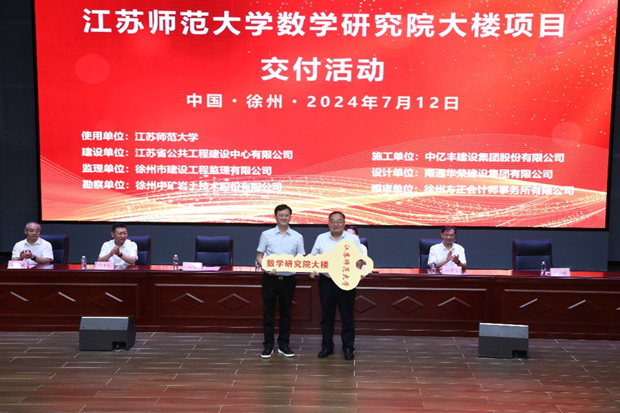 7月12日上午,數學研究院大樓交付活動在大樓報告廳順利舉行,校黨委副書記、校長周汝光,校黨委常委、副校長張其飛,數學研究院執行院長苗正科及我校相關職能部門主要負責人出席活動,省住建廳集建處處長曹良春,省公建中心執行董事、總經理高飛及各參建單位領導和相關人員共同參加。