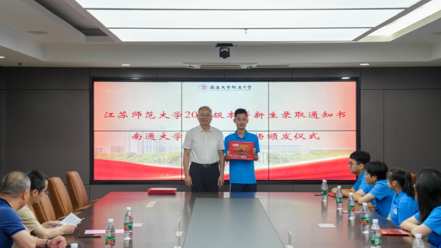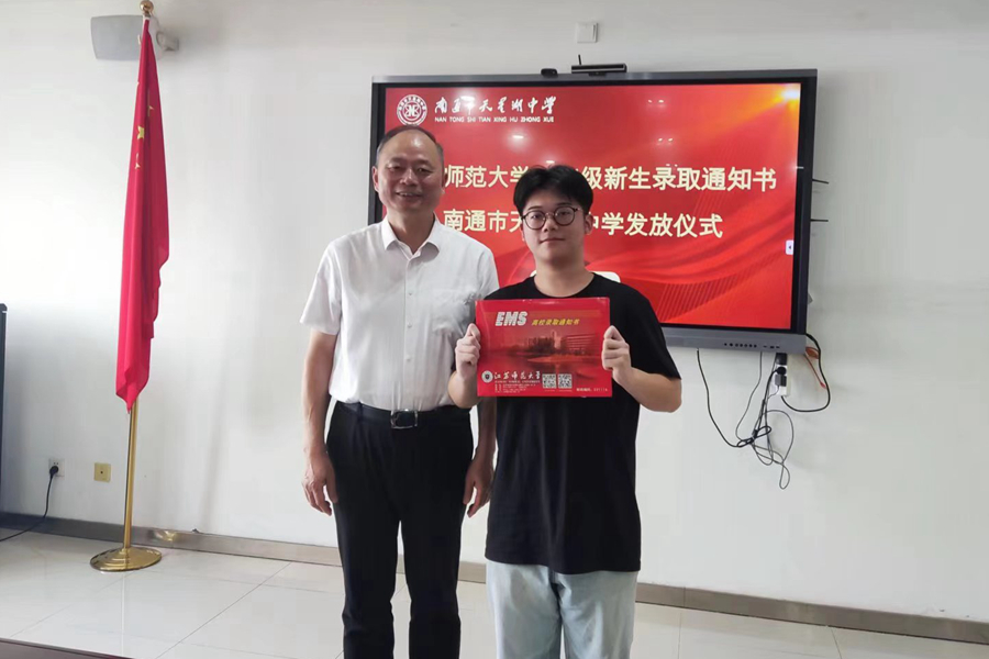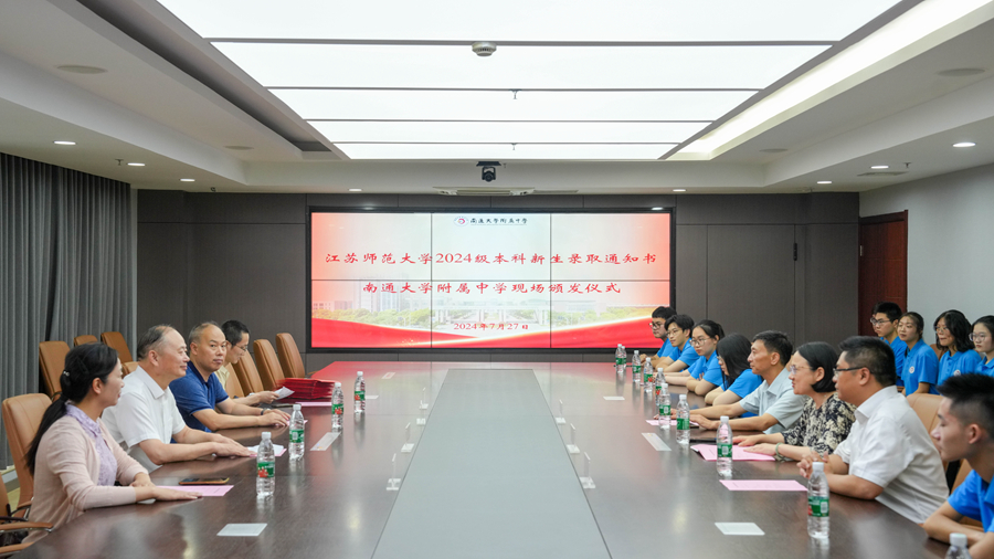 7月27日上午,校黨委書記方忠帶領相關部門負責同志先后前往南通大學附屬中學、南通市天星湖中學等生源中學,為錄取到我校的2024級新生現場頒發錄取通知書。在頒發儀式上,方忠先后向各位新生表示熱烈祝賀和向生源中學表示衷心感謝,并指出,江蘇師范大學建校72年來,始終堅持“為黨育人,為國育才”使命和“立德樹人”根本任務,遵照“崇德厚學,勵志敏行”校訓,充分發揮師范院校辦學優勢和人才培養特色,努力打造一流師資、一流學科和一流育人平臺,目前學校各項發展在同類高校中居于領先地位,是眾多有志學子錘煉道德品格、增長學識才干、實現理想抱負的首要選擇。希望同學們以此次升學為新起點,珍惜機會,繼續努力,堅志勇為,爭取早日學有所成,為社會作出應有的貢獻。