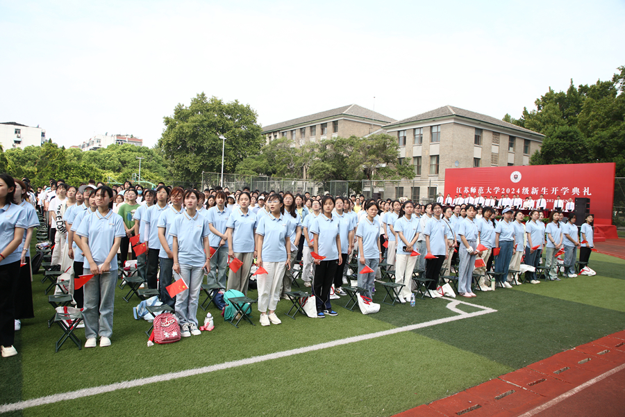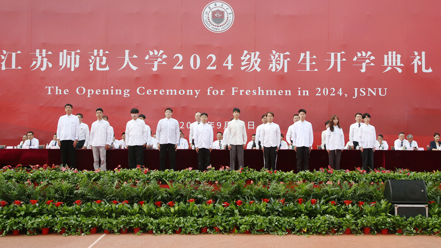 在《我和我的祖國》歌聲中,一面鮮艷的巨幅五星紅旗在同學們的頭上徐徐展開,江蘇師范大學2024級新生開學典禮圓滿落幕。從此,江蘇師范大學這個大家庭又增加了8218名新成員。他們將踐行“崇德厚學、勵志敏行”的校訓和“守正出新、堅志勇為”校園精神,在師大這片沃土上汲取知識營養和精神力量,努力成長為國家和社會的棟梁。