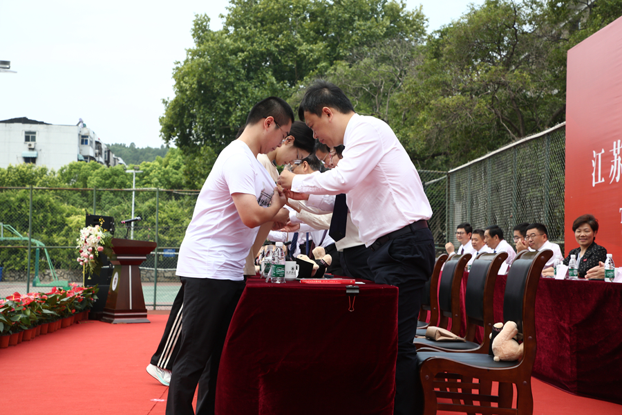 千里求學赴前程,從此鐫刻蘇師人。全體2024級學生從進入校園起,就開啟了與江蘇師范大學的一生之緣。從佩戴校徽時起,“江蘇師范大學”這六個字將深深鐫刻在他們的心中。典禮上,與會校領導為新生代表佩戴校徽,臺下的全體2024級學生也將他們手中的江蘇師范大學校徽佩戴在自己的胸前,從此成為江蘇師大的一份子。