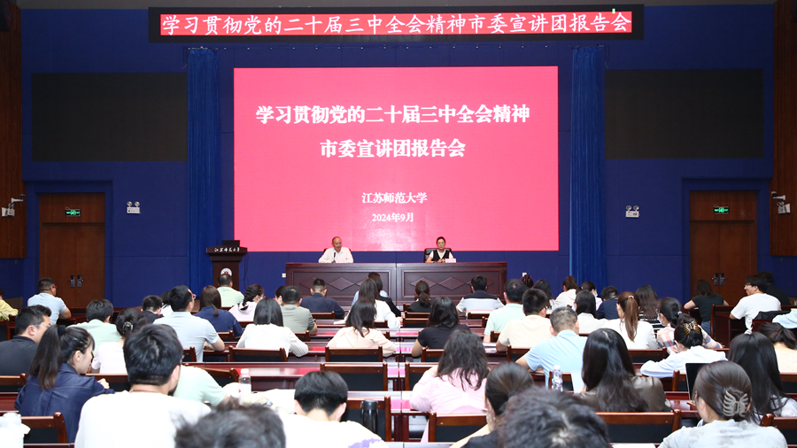 為深入學習宣傳貫徹黨的二十屆三中全會精神,按照徐州市委工作安排,9月29日下午,學習貫徹黨的二十屆三中全會精神市委宣講團成員、我校馬克思主義學院李丹副教授作學習貫徹黨的二十屆三中全會精神宣講報告。學校部分黨政領導干部,全體輔導員,第27屆中國青年志愿者研究生支教團全體成員,第15期“青馬工程”培訓班全體學員聆聽了報告。校黨委書記方忠主持報告會。