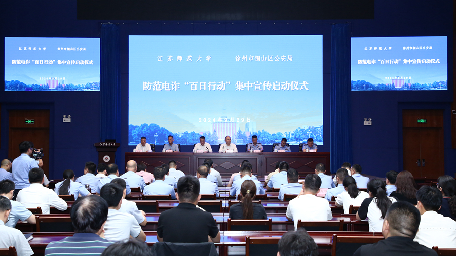 9月29日下午,學校與銅山區公安局聯合開展的防范電詐“百日行動”集中宣傳啟動儀式在分析測試中心100報告廳舉行。校黨委書記方忠,銅山區政府副區長、銅山區公安局黨委書記、局長陳磊出席,銅山區公安局公安干警40余人,各單位安全責任人及各學院黨委副書記、安全員、輔導員代表、學生代表等160余人參加啟動儀式,啟動儀式由校黨委常委、副校長張玉勤主持。