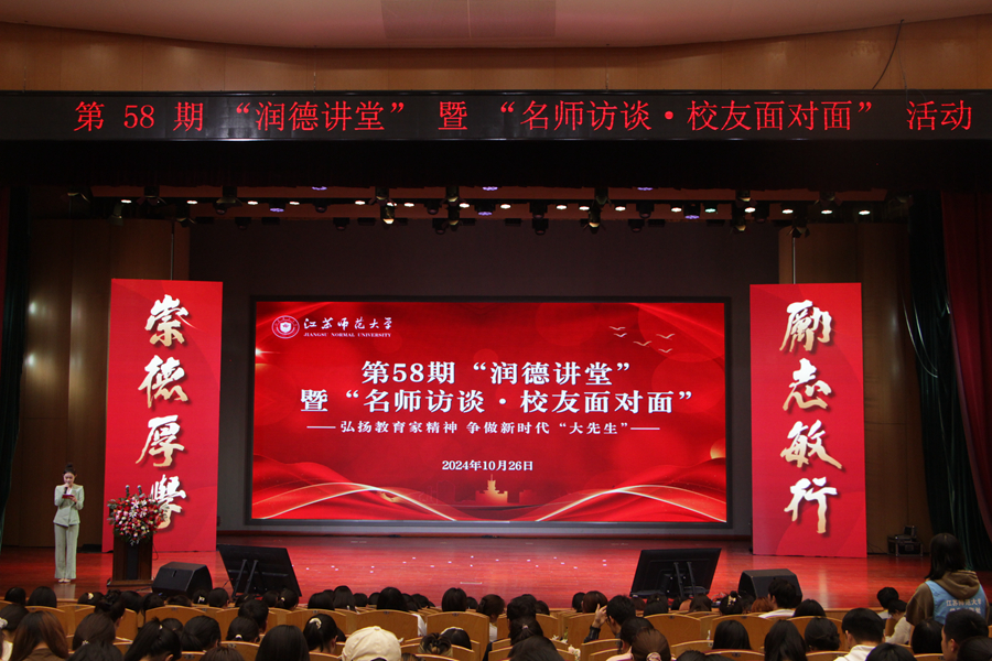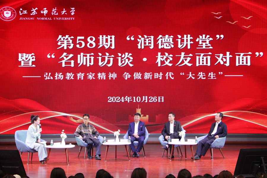 10月26日下午,何文秋、胡恒進(jìn)、吳寶瑩和王保強(qiáng)四位長(zhǎng)期奮戰(zhàn)在教育領(lǐng)域的94屆校友,做客學(xué)校第58期“潤(rùn)德講堂”暨“名師訪談·校友面對(duì)面”活動(dòng),活動(dòng)以“弘揚(yáng)教育家精神,爭(zhēng)做新時(shí)代‘大先生’”為主題,他們以自身教育經(jīng)歷與同學(xué)們分享何為教育家精神。