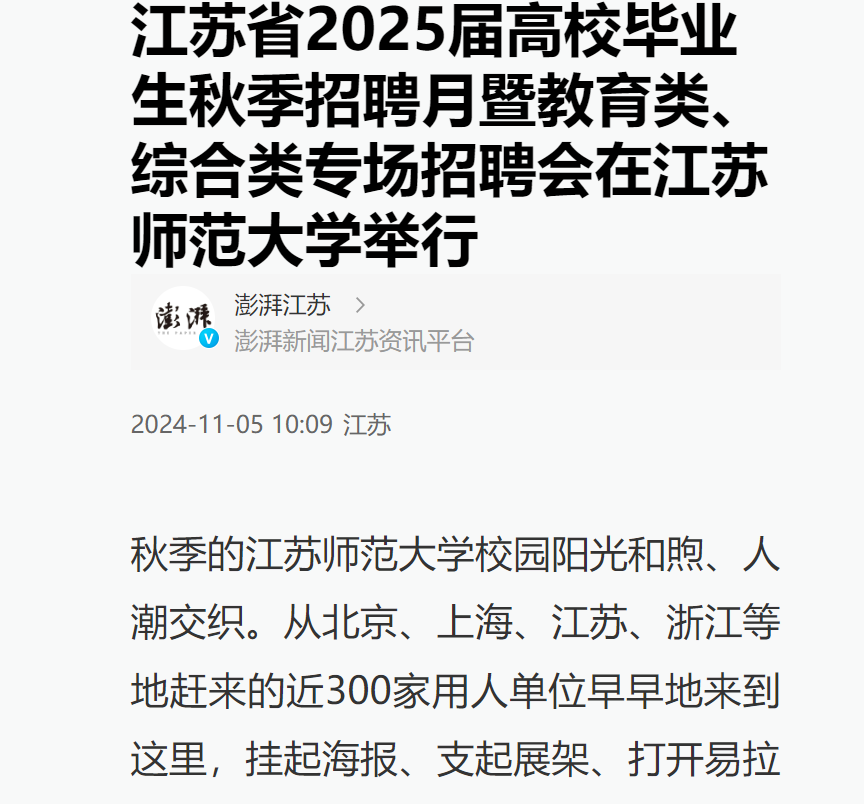 江蘇省2025屆高校畢業(yè)生秋季招聘月暨教育類、綜合類專場招聘會在江蘇師范大學(xué)舉行