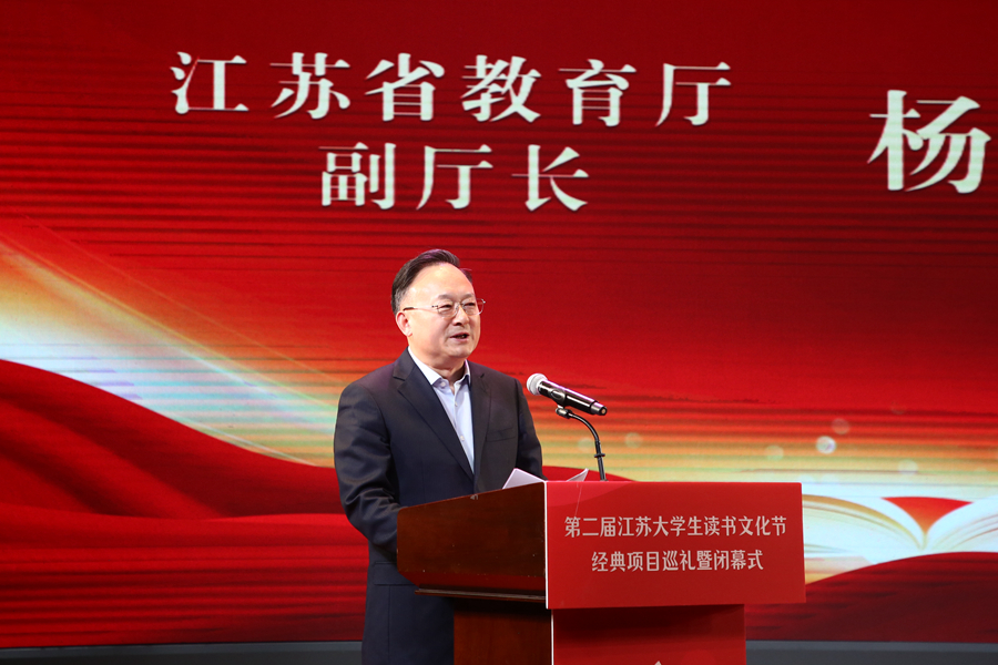 楊樹兵在講話中指出,黨的十八大以來,以習近平同志為核心的黨中央深入實施文化惠民工程,推動全民閱讀的質量水平得到顯著提升。江蘇省委、省政府深入實施全民閱讀工作,加快構建與“建成社會主義文化強國先行區”相適應的現代公共閱讀服務體系。省教育廳以高校新文科建設為謀劃和抓手,通過啟動大學生讀書文化節系列活動,推動讀書行動落地見效,形成了內容拓展、載體升級和機制協同的良好局面。他希望,廣大江蘇青年學子要珍惜美好的讀書時光,將修身立德作為讀書之志,將習慣養成作為讀書之趣,將知行合一作為讀書之用,在閱讀中汲取知識、激發興趣、充實自我、提升本領,迅速成長為政治立場堅定、精神風貌昂揚、道德品質卓越、文化素養深厚的新時代有為青年。
