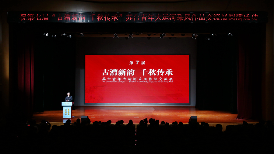 開幕式現(xiàn)場還進行了第七屆“古漕新韻 千秋傳承”蘇臺兩地藝術(shù)家同繪大運河美術(shù)作品展獲獎作品頒獎和揭幕。