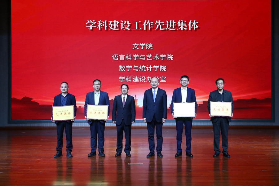 會議表彰了學校學科建設工作先進集體和先進個人。文學院、語言科學與藝術學院、數學與統計學院和學科建設辦公室等4家單位榮獲“學科建設工作先進集體”,陳木法、楊亦鳴等28人榮獲“學科建設工作先進個人”。隨后大會進行了交流發言。中國語言文學和數學兩個學科就博士點申報成功介紹了相關經驗,教育學和物理學兩個學科代表2026年擬申博學科就學科建設思路等進行了交流。