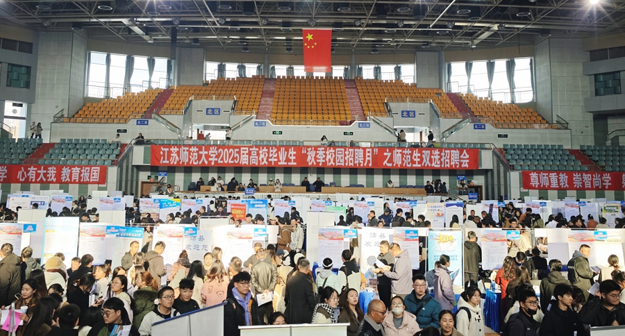 12月2日下午,2025屆高校畢業(yè)生“秋季校園招聘月”系列活動之師范生雙選招聘會在我校泉山校區(qū)體育館舉辦,校黨委常委、副校長商亮,省高校招生就業(yè)指導(dǎo)服務(wù)中心、參展教育單位招聘工作人員,我校學(xué)生工作處、研究生工作部負責(zé)同志,各學(xué)院黨委副書記、畢業(yè)班輔導(dǎo)員、班主任及3600余名師范類畢業(yè)生參加招聘活動。