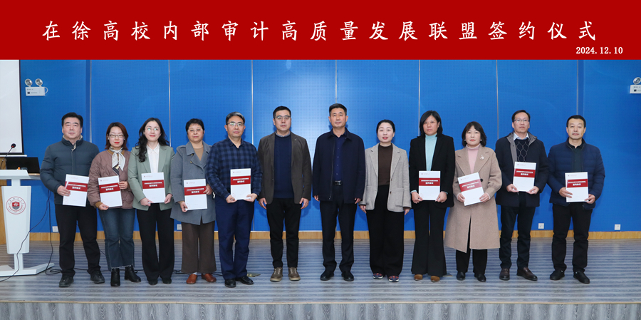 與會高校審計部門主要負責同志共同簽署在徐高校內(nèi)部審計高質(zhì)量發(fā)展聯(lián)盟協(xié)議。