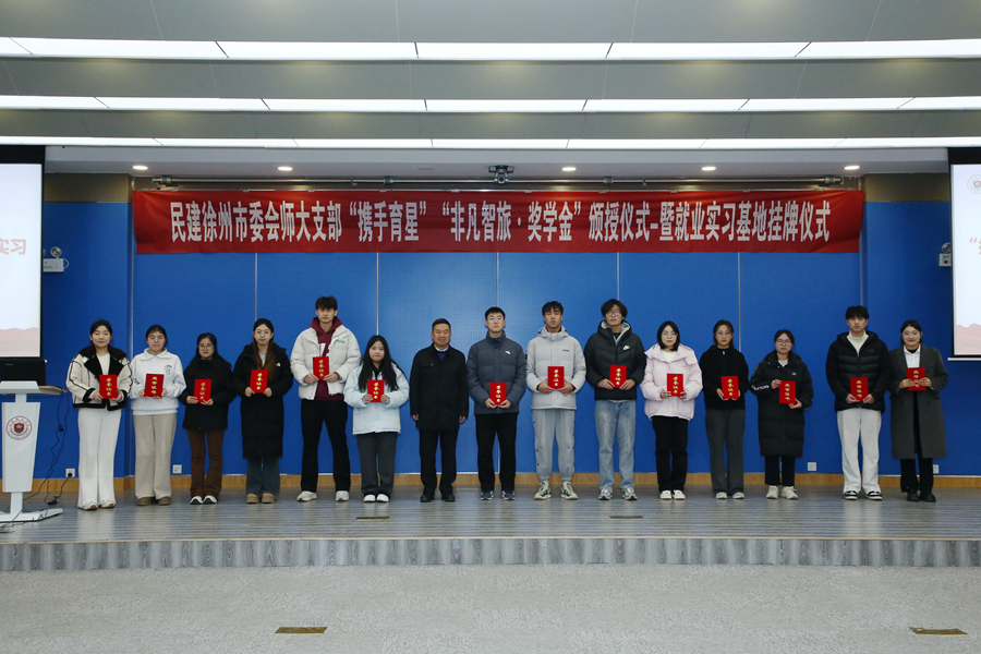 民建徐州市委會江蘇師大支部“攜手育星獎學金”頒授暨就業實習基地掛牌儀式在我校舉行