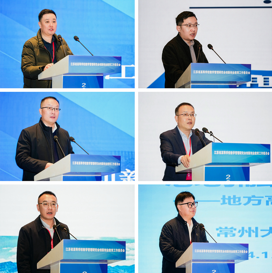 創新大賽成績優異高校和金獎突破高校經驗分享環節。南京理工大學雙創學院副院長趙茜,南京工程學院雙創學院院長王育榮,南京中醫藥大學教務處處長陳志鵬,南京藝術學院學生工作處處長、創新創業學院常務副院長仲社,蘇州城市學院教務處副處長顧榮慶,江蘇信息職業技術學院雙創學院院長蔣小三,分別作了經驗分享與交流。