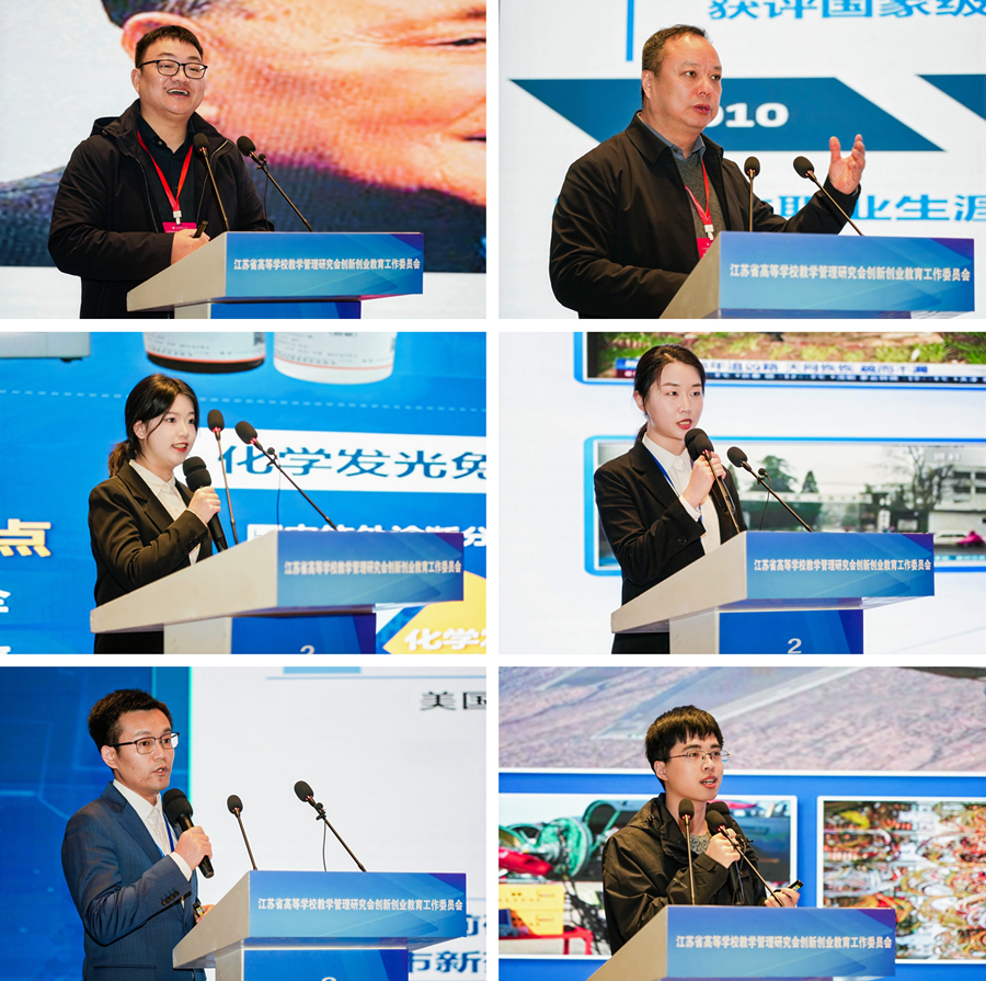 本次年會還特別增加了江蘇省國賽金獎項目交流環節,南京航天航空大學、蘇州大學、中國藥科大學、江蘇食品藥品職業技術學院在總決賽小組路演評分中獲得第一的項目進行了參賽經驗、收獲分享。