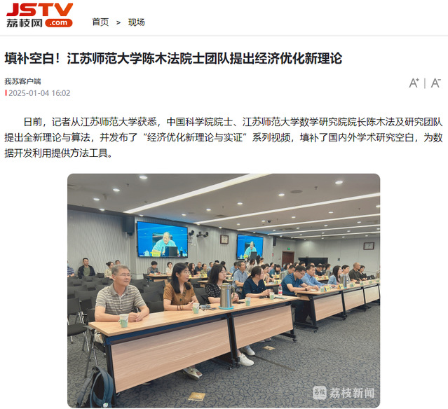 江蘇廣電荔枝網1月4日報道我校陳木法院士團隊研究成果,報道內容如下: