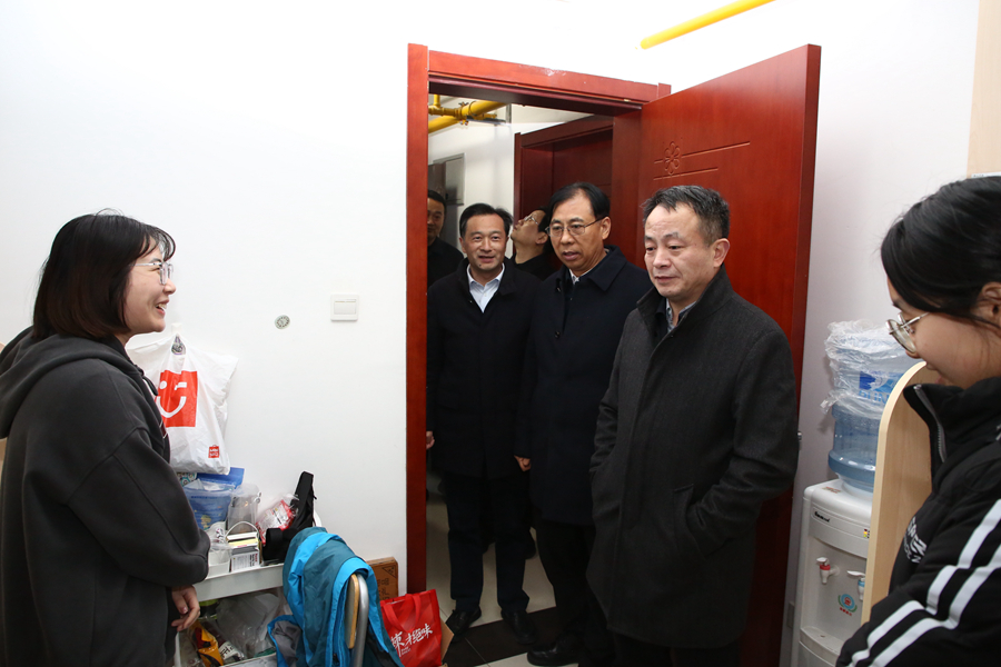 為全面排查治理校園安全風(fēng)險(xiǎn),切實(shí)做好學(xué)校寒假期間校園安全工作,1月12日下午,校黨委書記芮國強(qiáng),校長杜增吉,副校長商亮、張其飛等校領(lǐng)導(dǎo)帶隊(duì)開展寒假前校園安全大檢查,黨委辦公室、校長辦公室、研究生院、學(xué)生工作處、實(shí)驗(yàn)室與設(shè)備管理處、后勤管理處、基建處、保衛(wèi)處、后勤集團(tuán)等單位負(fù)責(zé)同志陪同檢查。