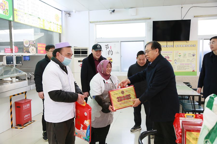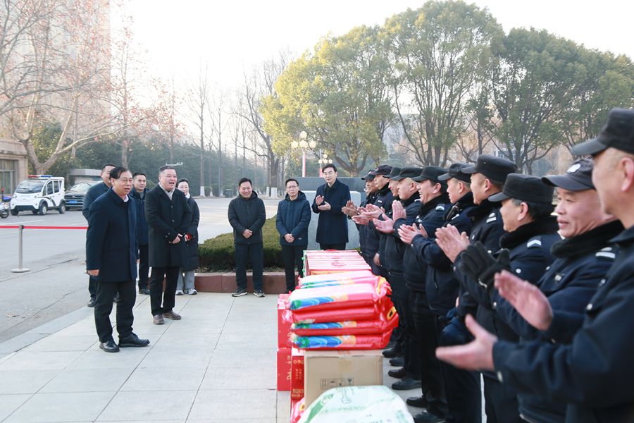 1月29日,乙巳蛇年正月初一,校長(zhǎng)杜增吉帶隊(duì)走訪慰問春節(jié)期間堅(jiān)守崗位的教職工和寒假留校學(xué)生,代表學(xué)校向他們致以誠(chéng)摯問候和新春祝福。校長(zhǎng)辦公室、工會(huì)、后勤管理處、保衛(wèi)處、后勤集團(tuán)等單位負(fù)責(zé)人陪同。
