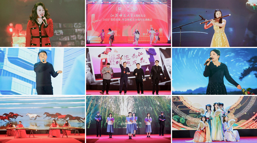 慶典晚會上,校友們自編自演的歌舞、器樂演奏、詩朗誦、電影配音等節目精彩紛呈。活動現場氣氛熱烈、情意濃濃。