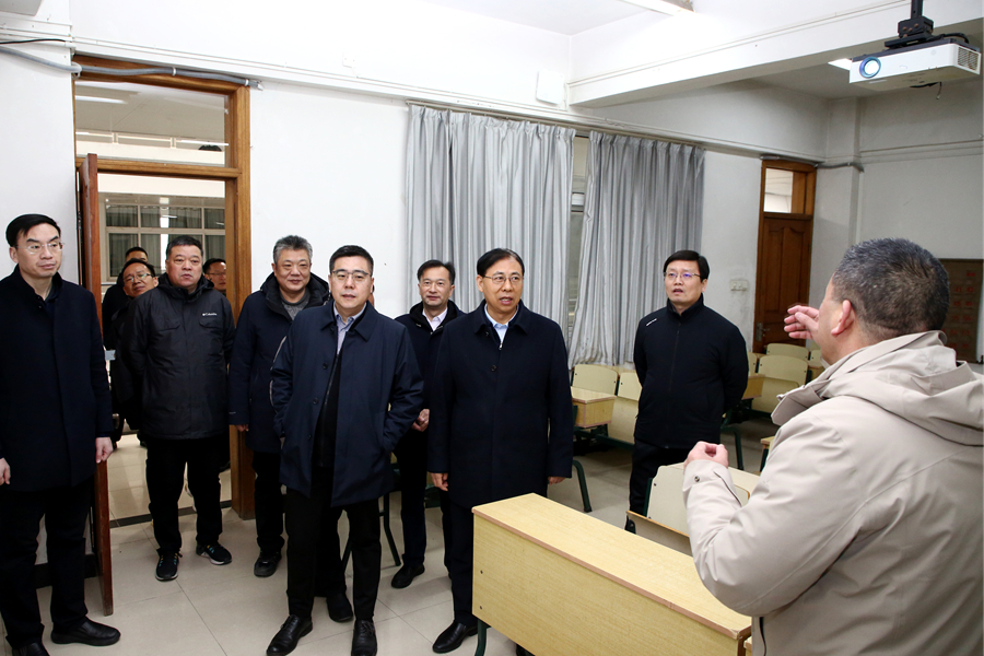 2月21日上午,校長杜增吉,副校長商亮、張其飛、趙鵬率隊檢查新學期開學準備工作。校長辦公室、教務部、學生工作處、實驗室與設備管理處、后勤管理處、基建處、保衛處、后勤集團、教學資源保障中心等單位負責同志陪同檢查。